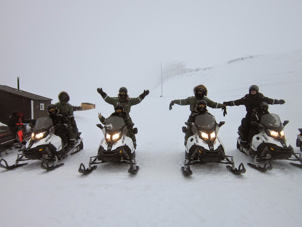 The plan for the day is to go by snowmobiles to Tempelfjorden. Before the trip the Arctic Adventures company gives us detailed safety instructions, dresses us up in special suits and boots. Of course the helmet, the goggles and the gloves are provided. A short instruction on how to drive a snowmobile and … let’s go …